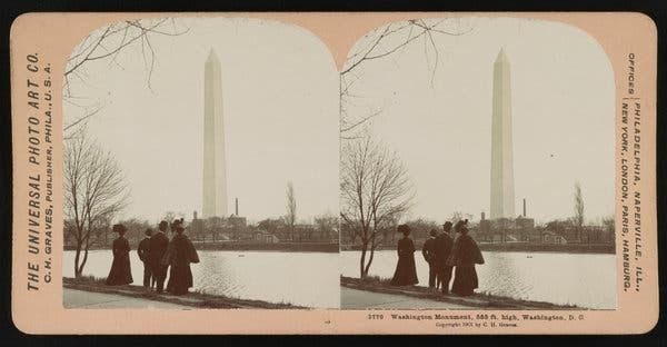 Figura 1: Um estereógrafo do monumento de Washington em 1901. A altura dos monumentos, por enquanto, é de 169 metros. Créditos ... Biblioteca do Congresso.