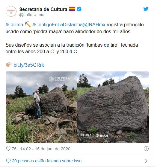 O petróglifo foi encontrado em 7 de junho por especialistas do INAH, alguns dias após o envio de uma comunicação ao Centro do INAH em Colima.