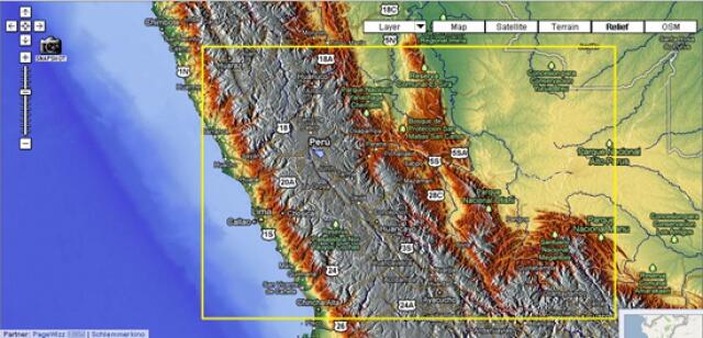 Acima, Brasília e todas as demais cidades-satélite do seu entorno. A ferramenta ZOOM funciona normalmente. Em COUNTRIES o serviço oferece um zoom de toda a área correspondente ao país solicitado. Neste caso o Peru, estando a imagem centrada em Lima, sua capital. (Figuras 3 e 4)