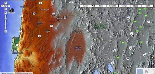 O site http://www.maps-for-free.com/ oferece a oportunidade de copiarmos áreas cobertas por imagens da Missão SRTM de qualquer parte do Mundo, além de destacar o relevo em SRTM dos países e grande parte das suas capitais, além dos principais vulcões ao redor do mundo, bem como os acidentes geográficos mais significativos. Tudo isso pode ser incorporado posteriormente como uma nova camada sobre um determinado mapa aberto no Google Maps. (Figura 1)