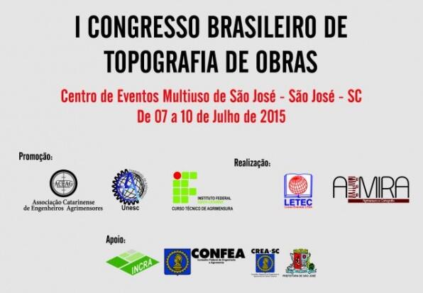 Em comemoração aos 25 anos da revista A Mira e aos 40 anos de criação do curso de engenharia de agrimensura da Universidade do Extremo Sul catarinense (Unesc), a Associação Catarinense de Engenheiros Agrimensores (Aceag), promoverá, em São José – SC, de 7 a 10 de julho de 2015, o I Congresso Brasileiro de Topografia de Obras, com participação do departamento de engenharia de agrimensura da Unesc e do curso técnico de agrimensura do Instituto Federal de Santa Catarina.
