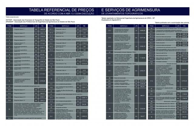 Tabela Referencial de Preços e Serviços de Agrimensura: De acordo com a NBR 13.133/94 Execução de Levantamentos Topográficos